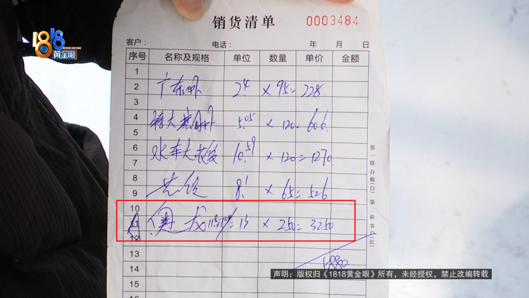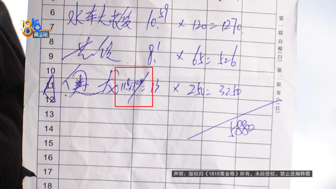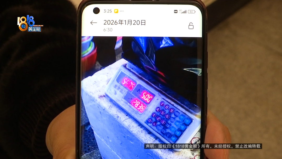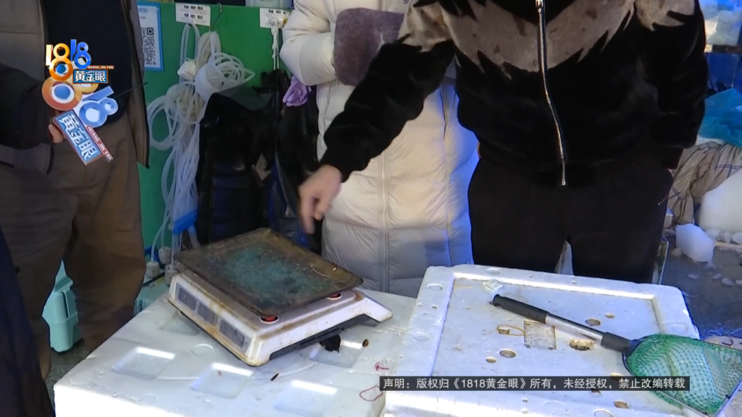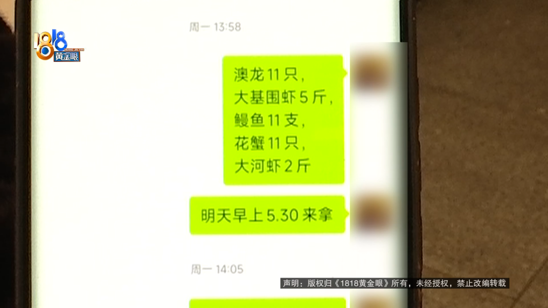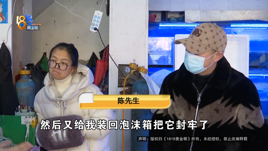 陈先生:单子上给我写的两,但是秤上只两。然后她说还要再斤多的,干冰还是什么水分的,那个损耗也要算给我,反正就是收了斤的钱,也是按“澳龙”的价钱。